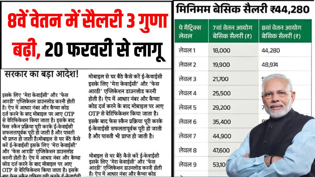 सरकार की घोषणा, 8वें वेतन में सैलरी 3 गुणा बढ़ी, 15 फरवरी से लागू – 8th Pay Commission Salary Shreya — February 17, 2026 सरकार दे रही शौचालय बनवाने के लिए ₹12000 की मदद, जानें कैसे करें आवेदन | Free Sauchalay Yojana 2025 Shreya — February 16, 2026 केंद्रीय कर्मचारियों और पेंशनभोगियों को बड़ी राहत, 4% बढ़ा महंगाई भत्ता – DA Hike Shreya — February 16, 2026 फरवरी में सरिया और सीमेंट के दामों में बड़ी गिरावट, आधे हुए दाम, जानें ताज़ा रेट | Sariya Cement Price Shreya — February 16, 2026 10वीं 12वीं बोर्ड परीक्षा को लेकर नई गाइडलाइन जारी, छात्रों के लिए नए नियम | Board Exam New Rules Shreya — February 16, 2026 पेंशनधारकों की बढ़ी उम्मीदें, EPFO पेंशन स्कीम में 36-मंथ नियम को लेकर बड़ा अपडेट | EPFO Pension Rule 2026 Shreya — February 16, 2026 60+ यात्रियों के लिए रेलवे किराए में फिर से 50% छूट शुरू Senior Citizen Railway Shreya — February 16, 2026 डिजिटल पेमेंट करने वालों के लिए जरूरी खबर, ₹2000 से ऊपर UPI ट्रांजैक्शन पर लगेगा चार्ज | UPI Payment New Shreya — February 16, 2026 सरकार की घोषणा, 8वें वेतन में सैलरी 3 गुणा बढ़ी, 20 फरवरी से लागू – 8th Pay Commission Salary Shreya — February 16, 2026 Previous 12345 Next